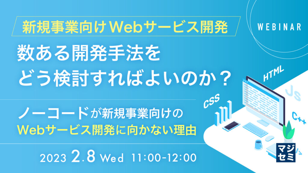 2023年2月8日(水):オンラインセミナー「新規事業向けWebサービス開発、数ある開発手法をどう検討すればよいのか?」開催のお知らせ