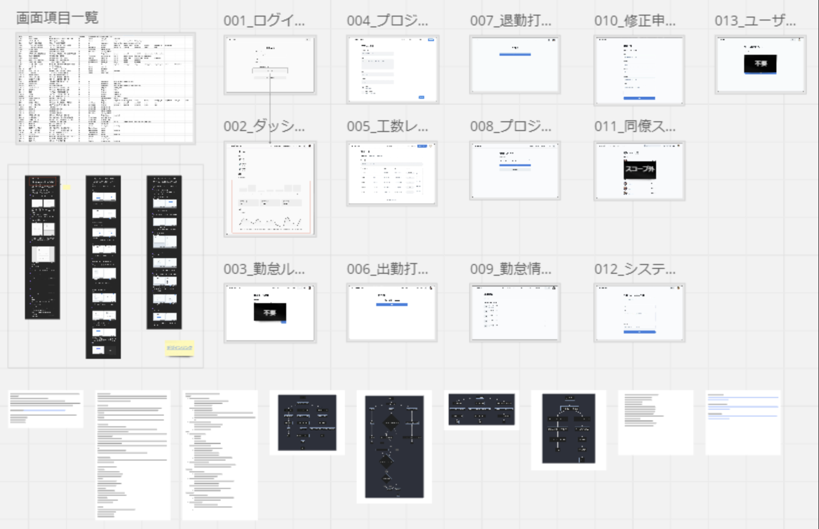 画面項目一覧、ワイヤーフレーム