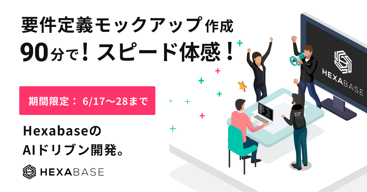 HexabaseのAIドリブン開発 期間限定『90分で要件定義モックアップ作成』スピード体感キャンペーン実施!!