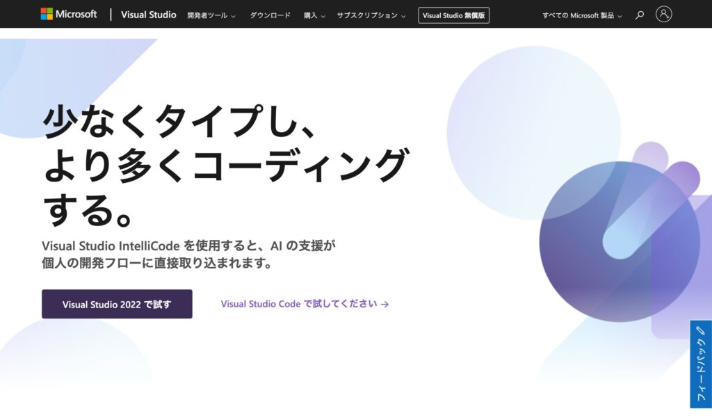 Visual Studio IntelliCodeはVisual Studioに搭載されている生成AIです。コード1行全体を生成してくれるサポート機能があります。また、入力補完が強化されており、最適なものから並ぶようになります。