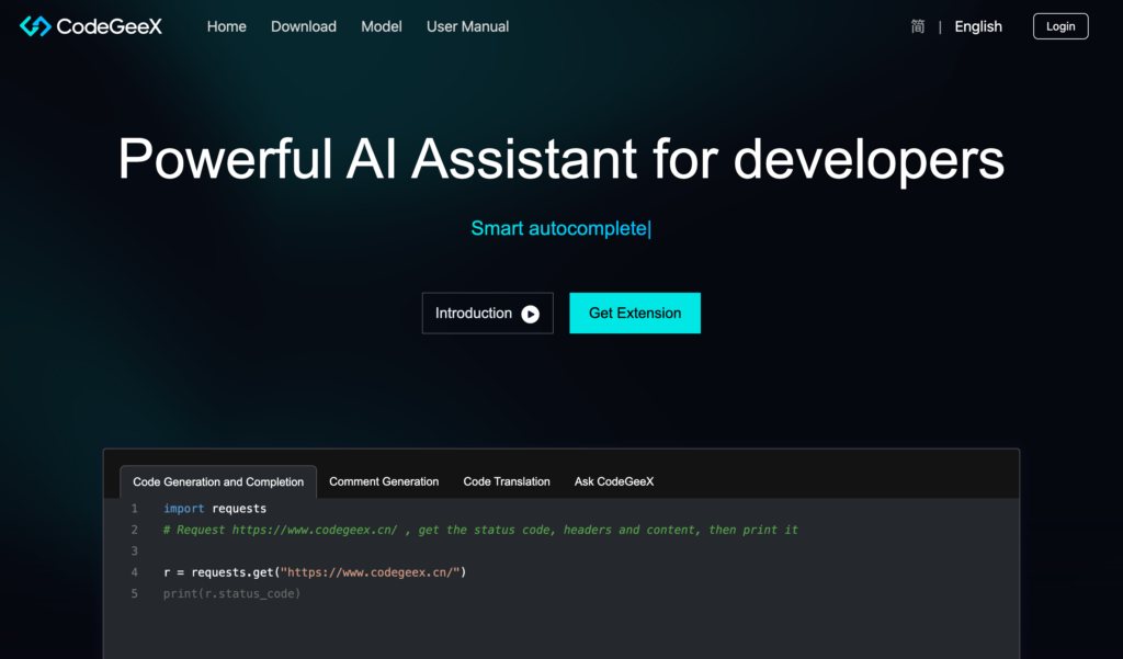CodeGeeXは中国製の生成AIサービスです。コードの自動生成、コメントの自動生成、コードの言語変換、チャットボットが利用できます。