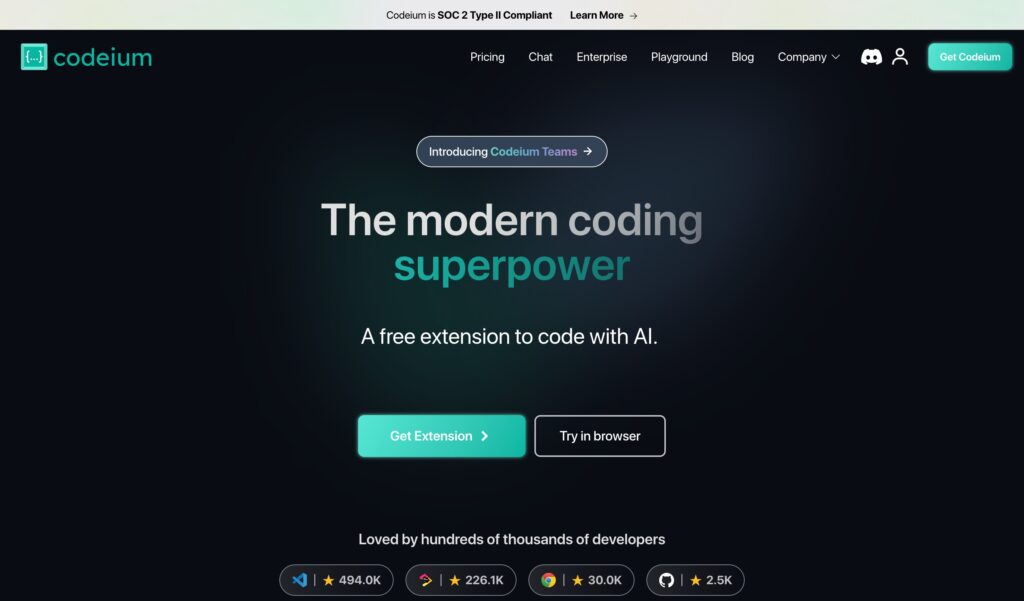 Codeiumは無料から使える生成AIサービスです。無料の場合はChatGPT 3.5ベースで、ChatGPT4は月12ドルで利用できます。