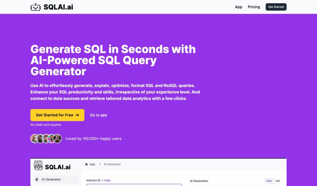 AI SQL Query GeneratorはSQLに特化したコード生成サービスです。データソースを読み込ませ、自然言語でクエリー情報を入力すると、それに合わせたSQLクエリーを生成してくれます。