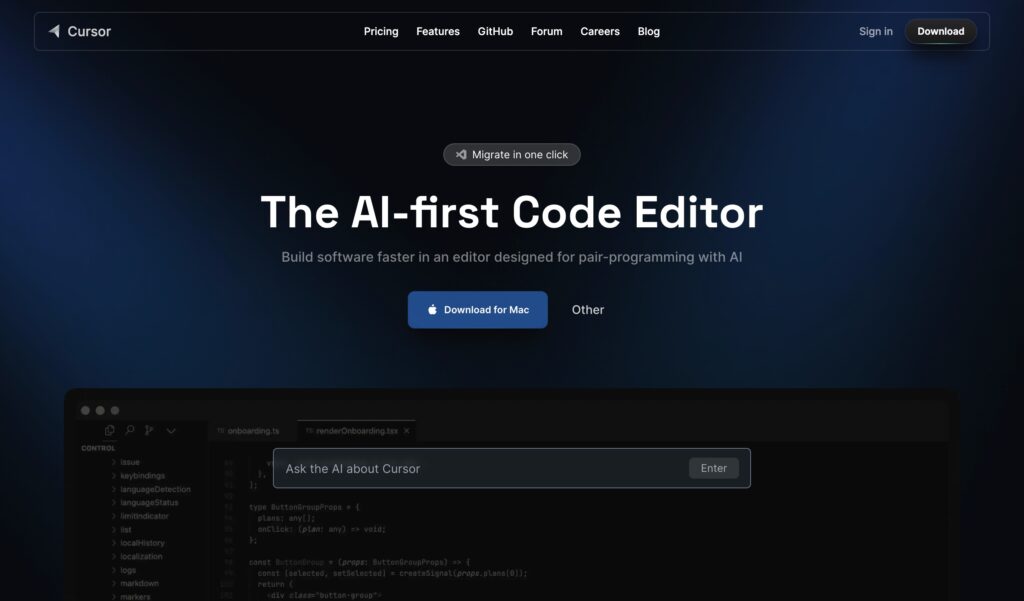 Cursorは元々エディタの中に生成AIを搭載しています。エディタのUIはVSCodeに似ています。チャットしたり、ファイルの参照などが素早く実現できます。