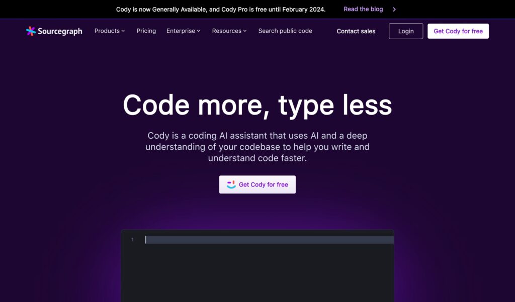 CodyはVSCodeの他、JetBrainsの各種IDE、Neovimで利用できます。料金はホビーユーザーは無料、Proは月9ドル(2024年2月まで無料)となっています。