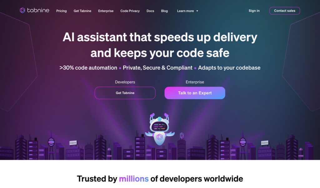Tabnine is an AI assistant that speeds up delivery and keeps your code safe