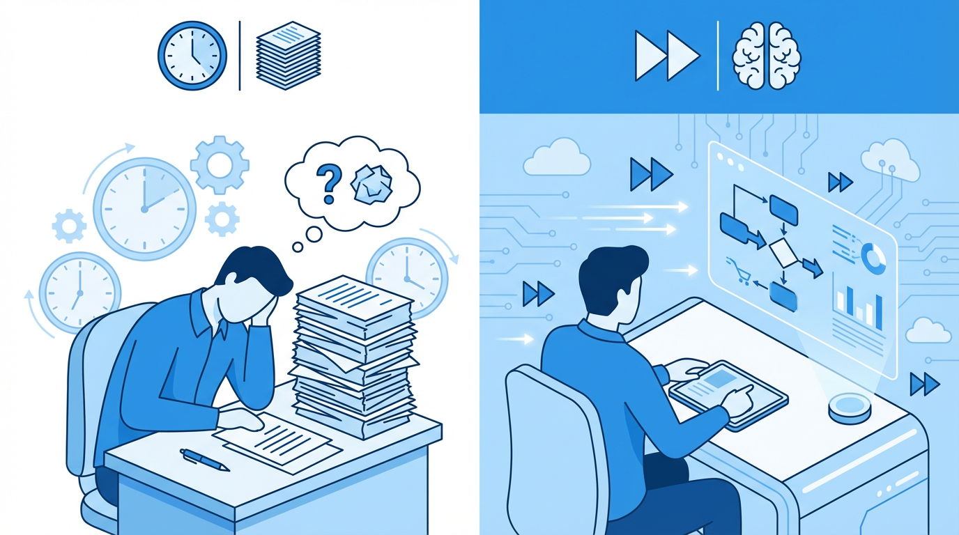プログラミング不要で、業務を整理しながら自動化を実現できるこの手法は、IT人材不在の中小企業にとって現実的な選択肢となっています。本記事では、3時間の業務を30分に短縮した実例、2026年版の主要ツール、段階的導入のステップを徹底解説します。