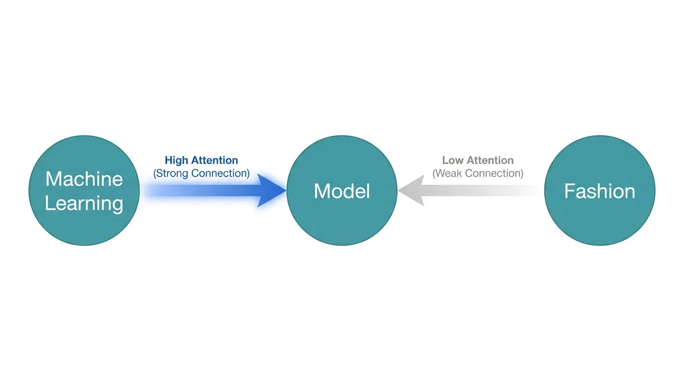 例えば「機械学習のモデルを選定する」という文があったとき、Attention機構は以下のように動作します。