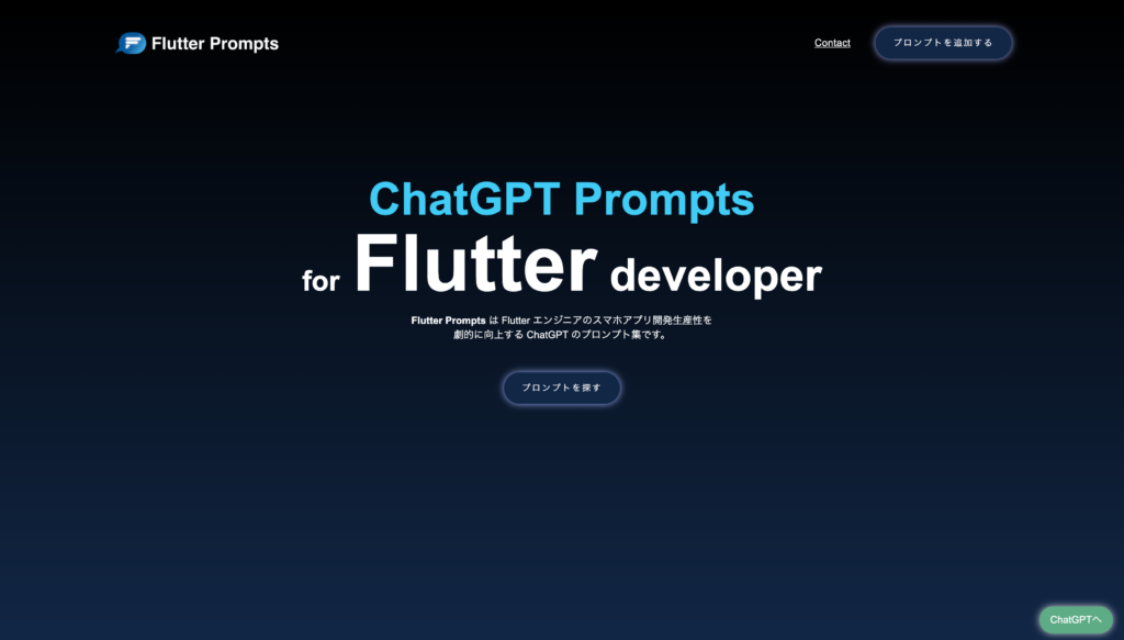 FlutterPrompts is a site that collects ChatGPT prompts for generating code for Flutter applications. By mimicking the prompts posted here, you can get the Flutter app code you expect. If used well, you can greatly reduce the amount of coding for your Flutter apps.