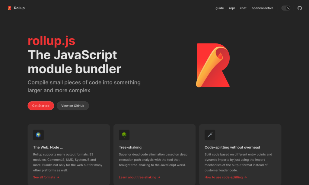 RollupはJavaScriptのモジュール依存関係を解決してくれるモジュールバンドラーです。コードをES6に変換するのが一つの特徴となっています。多くのバンドラーが古いブラウザ互換性を維持するためにES5に変換するのに対して、モダンなコードを出力してくれます。