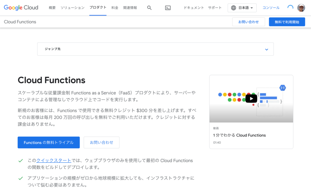関数をデプロイするとHTTPアクセスできるURLが発行されるので、他のサービスと比べるとシンプルに使い始められる印象です。