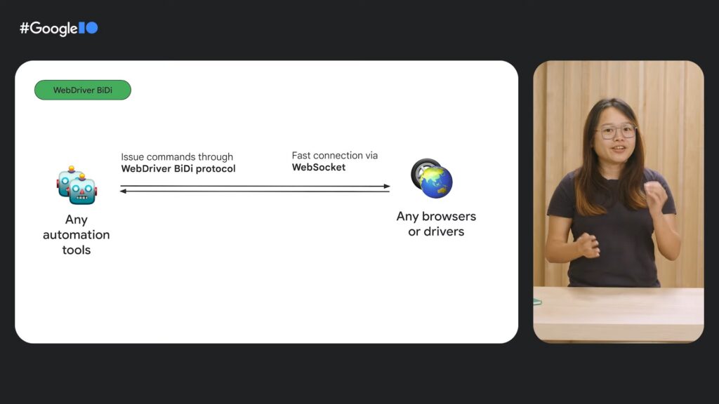 WebDriver BiDiはChrome DevTools Protocolを進化させる形で実装されています。Chrome以外のブラウザでも使えるように、かつSeleniumなどとも密に連携しながら開発が進められています。