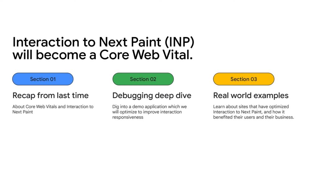 Core Web VitalsはWebアプリケーションのUXにおいて大事な指標となっていますが、新しい指標としてINP(Interaction to Next Paint)が追加されます。これはWebアプリケーション全体における入力への影響を計る指標です。