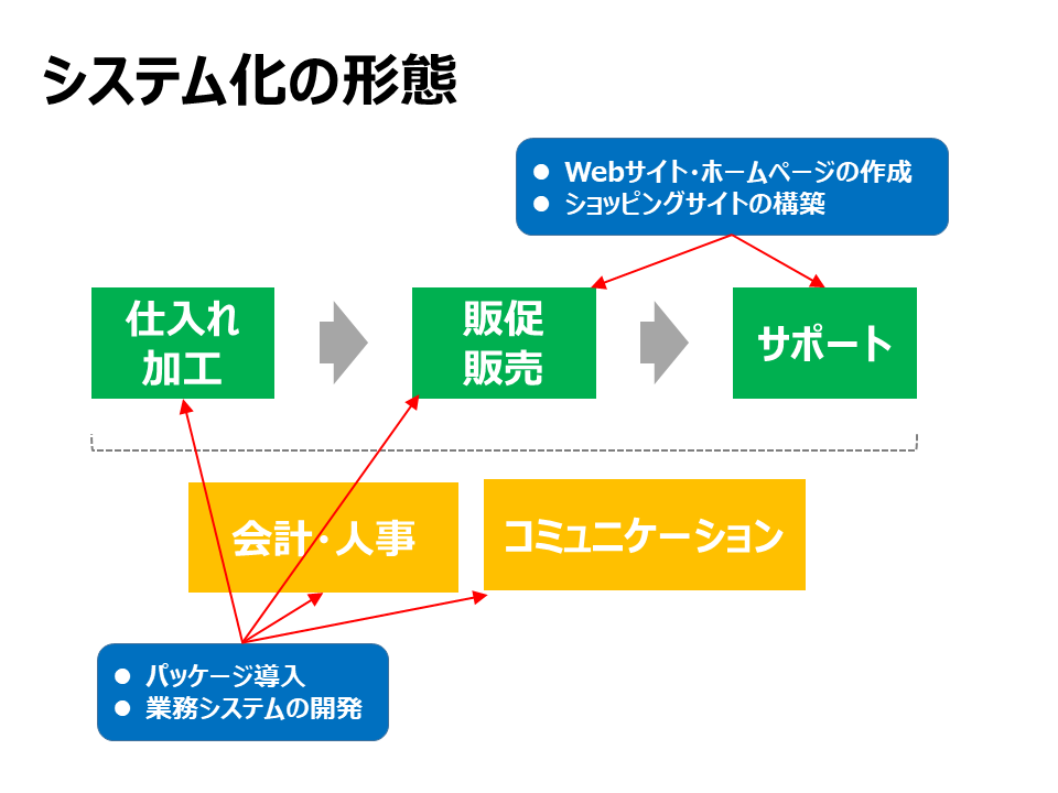 実際にシステム化する対象領域は、あなたの企業が抱える経営課題やチャレンジする分野によって決まります。これは、一概には答えることができません。最初に思いついた解決策が正解とも限りません。すばやいチャレンジを繰り返して検証していく必要があるでしょう。