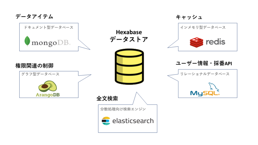 Hexabaseは、複数のNoSQLデータべースを統合して、RDBMSライクな独自のデータストレージを実現しています。このおかげで、従来のDB設計技術を活かしながら、データベースのボトルネックを解消します。