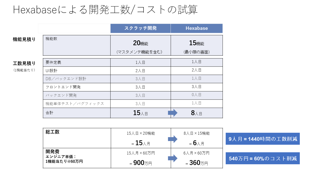 Hexabaseがあらかじめ用意している機能を活用することで、その機能を開発・運用するエンジニアを削減でき、よりお客様にとって価値のある開発に集中できます。