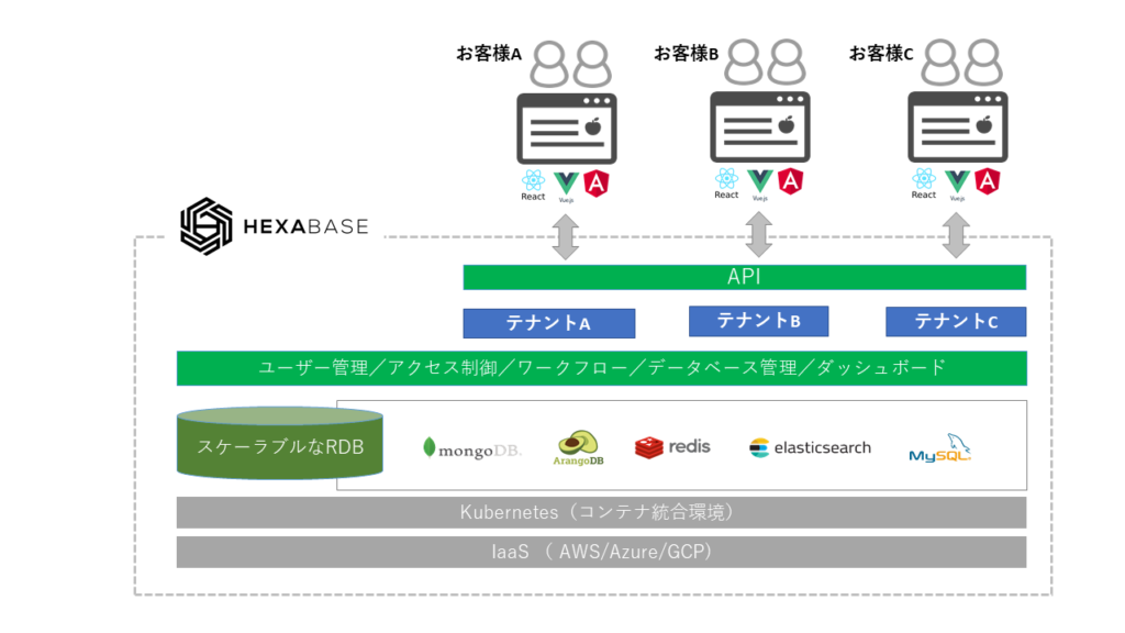 Hexabaseは、クラウドファーストな企業システムを高効率で開発できる、バックエンドクラウドサービスです。